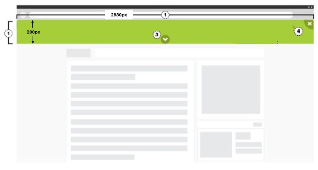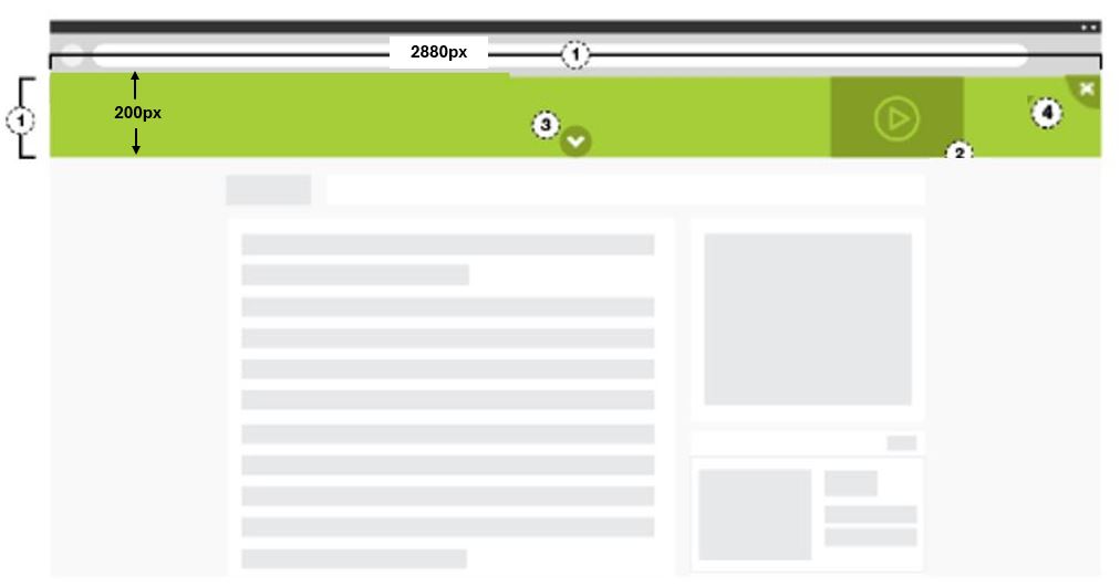 Ad Dimensions (W x H) | Expanded: 2880 (W) x 1000 (H) pixels, up to 600kb Collapsed: 2880 (W) x 200 (H) pixels, up to 300kb |
