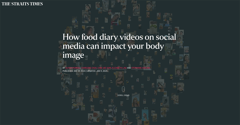 A second Honorable Mention in infographics was awarded for "How food diary videos on social media can impact your body image," praised as a "truly brilliant example of visual journalism." This was awarded to Alyssa Mungal, Charlene Chua, Chee Wei Xian, Elizabeth Law, and Stephanie Adeline.