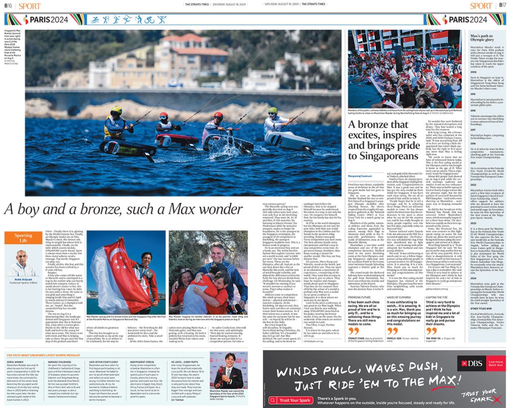 Singapore’s youngest Olympic medallist, Max Maeder, made headlines when he snagged the bronze medal for kitefoiling on Singapore’s birthday.