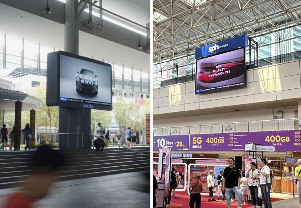 High-traffic visual domination: Eye-catching video advertisements were deployed on large-format DOOH screens in high-footfall locations at Bedok Town Square and HDB Hub. This captured public attention and reinforced the campaign message in key commercial and transport hubs, turning the launch into a visible, city-wide event.